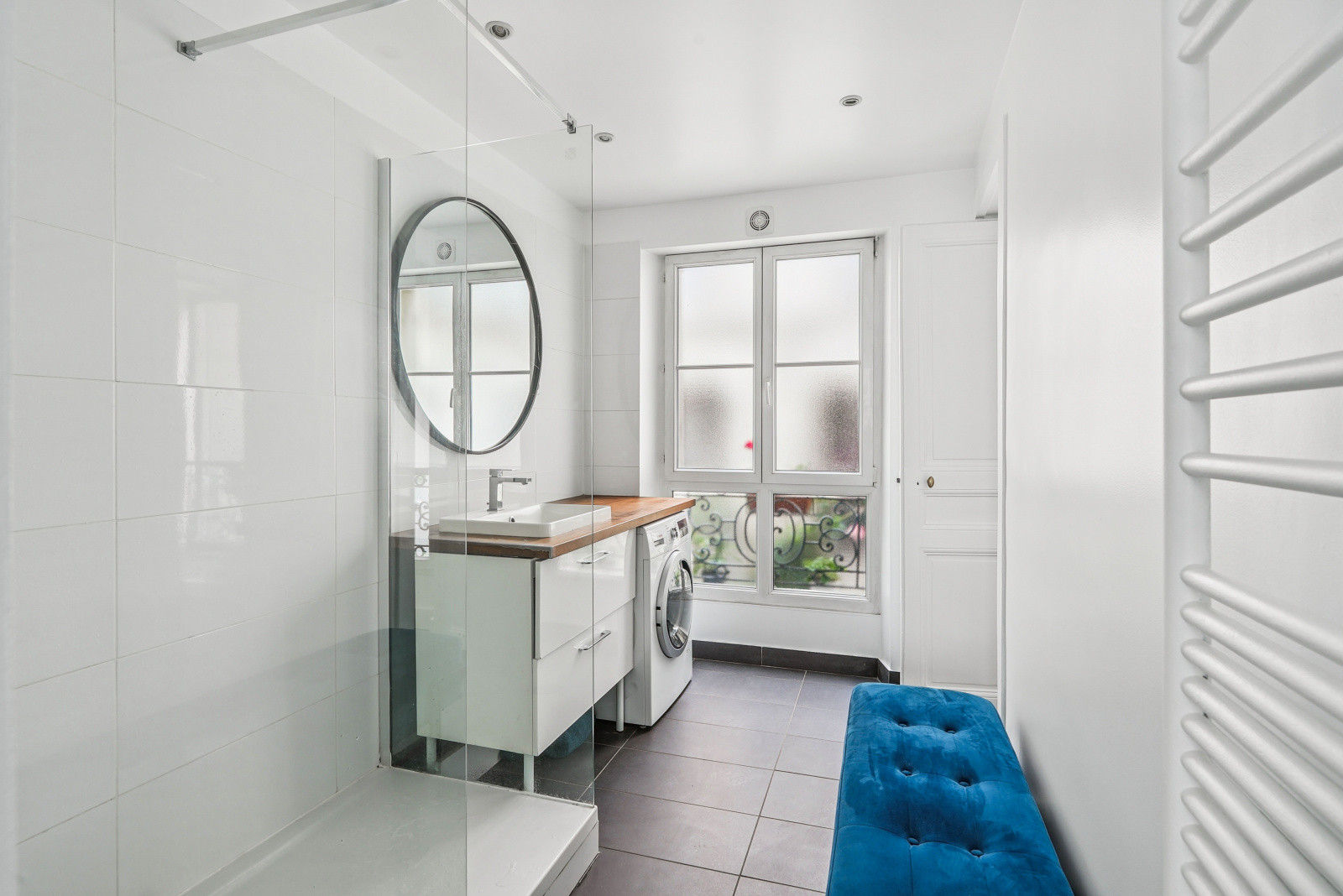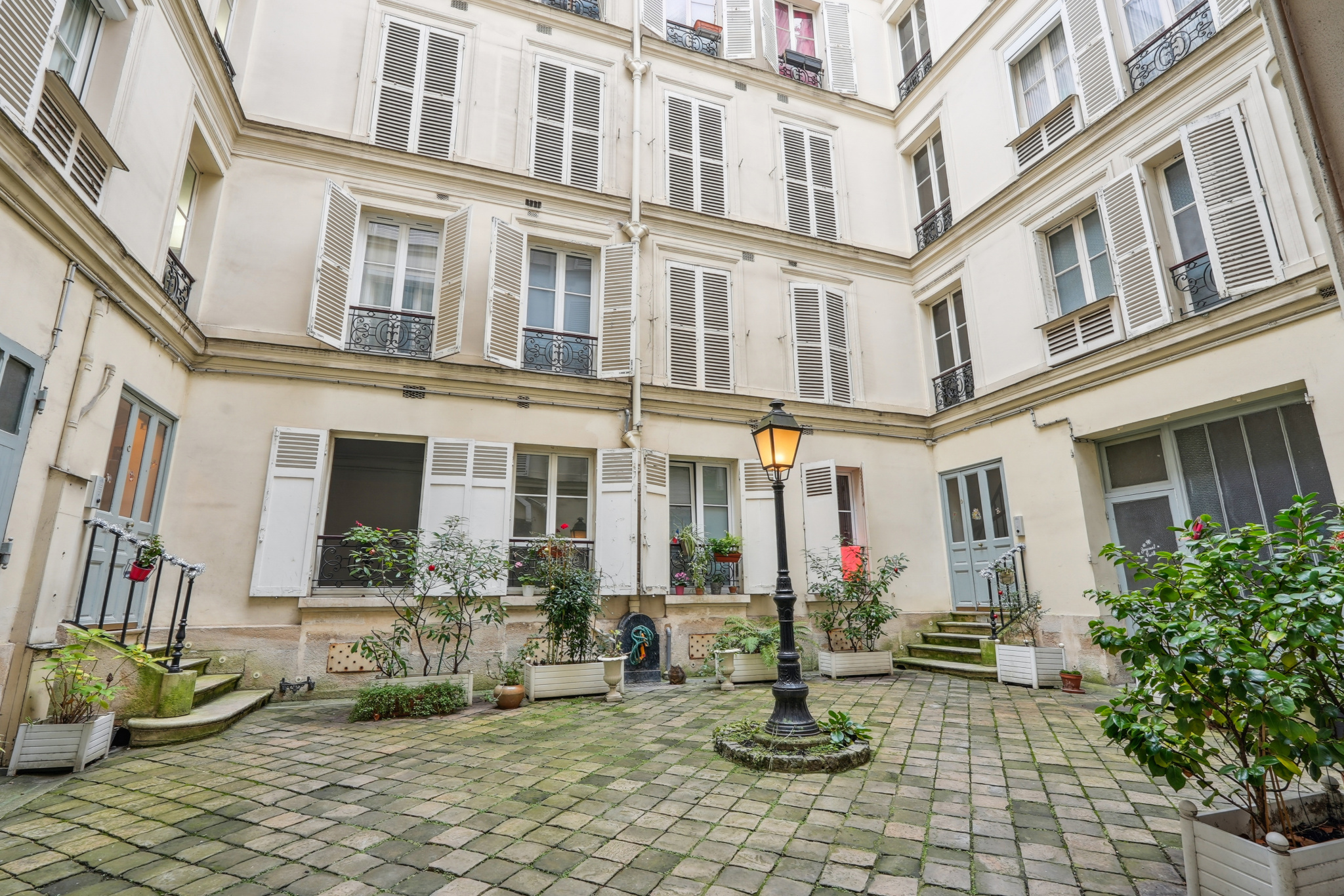 Dans le prolongement de l'entrée vous decouvrirez une seconde chambre d'environ 9m2, également communicante avec la salle d'eau et donnant sur une charmante cour intérieure au calme.