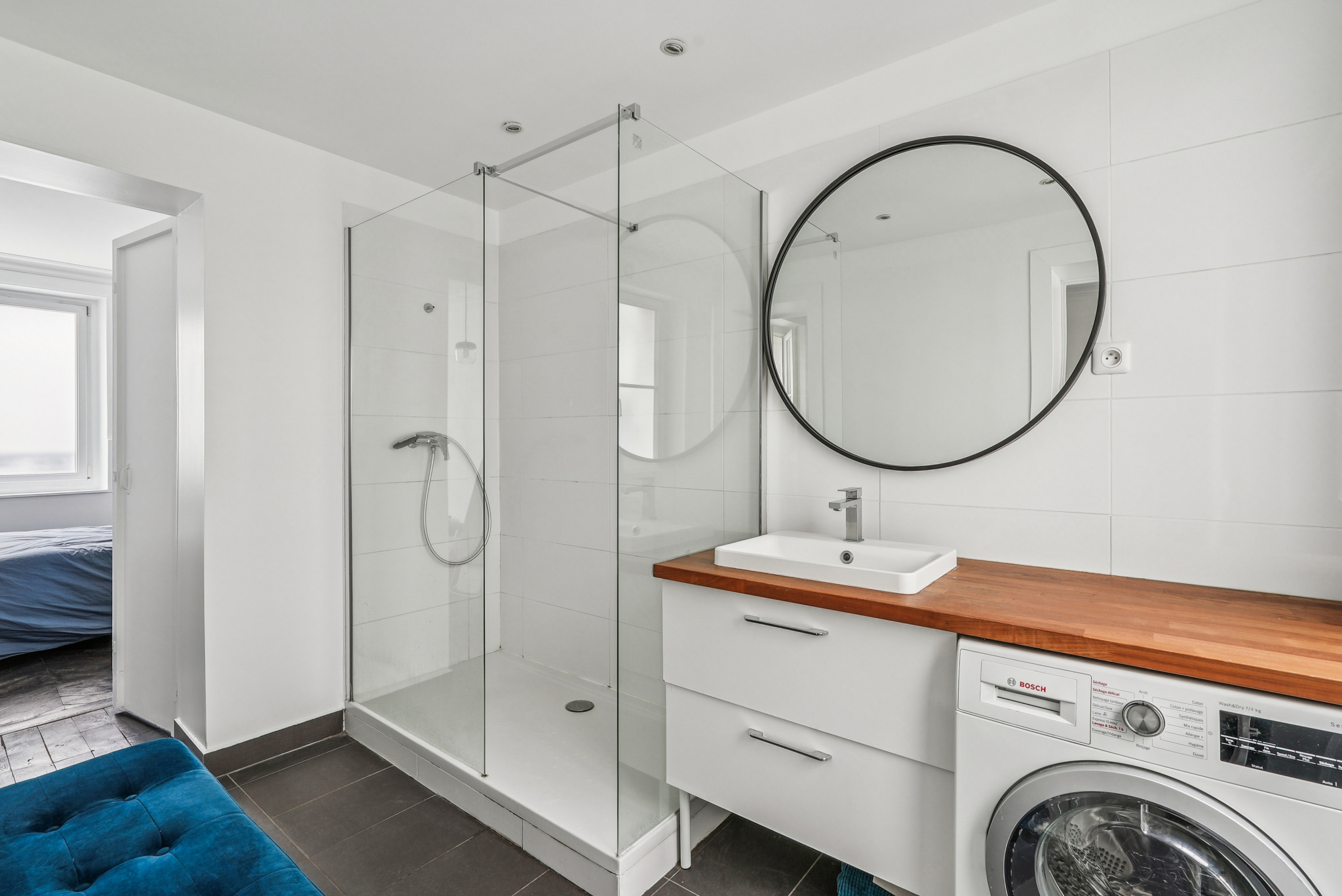 Dans le prolongement du séjour, vous découvrirez une élégante chambre parentale (12,73 m2) communicante avec une belle salle d’eau moderne, composée d’une vasque, d’une douche à l’italienne et d’une arrivée d’eau pour machine à laver.