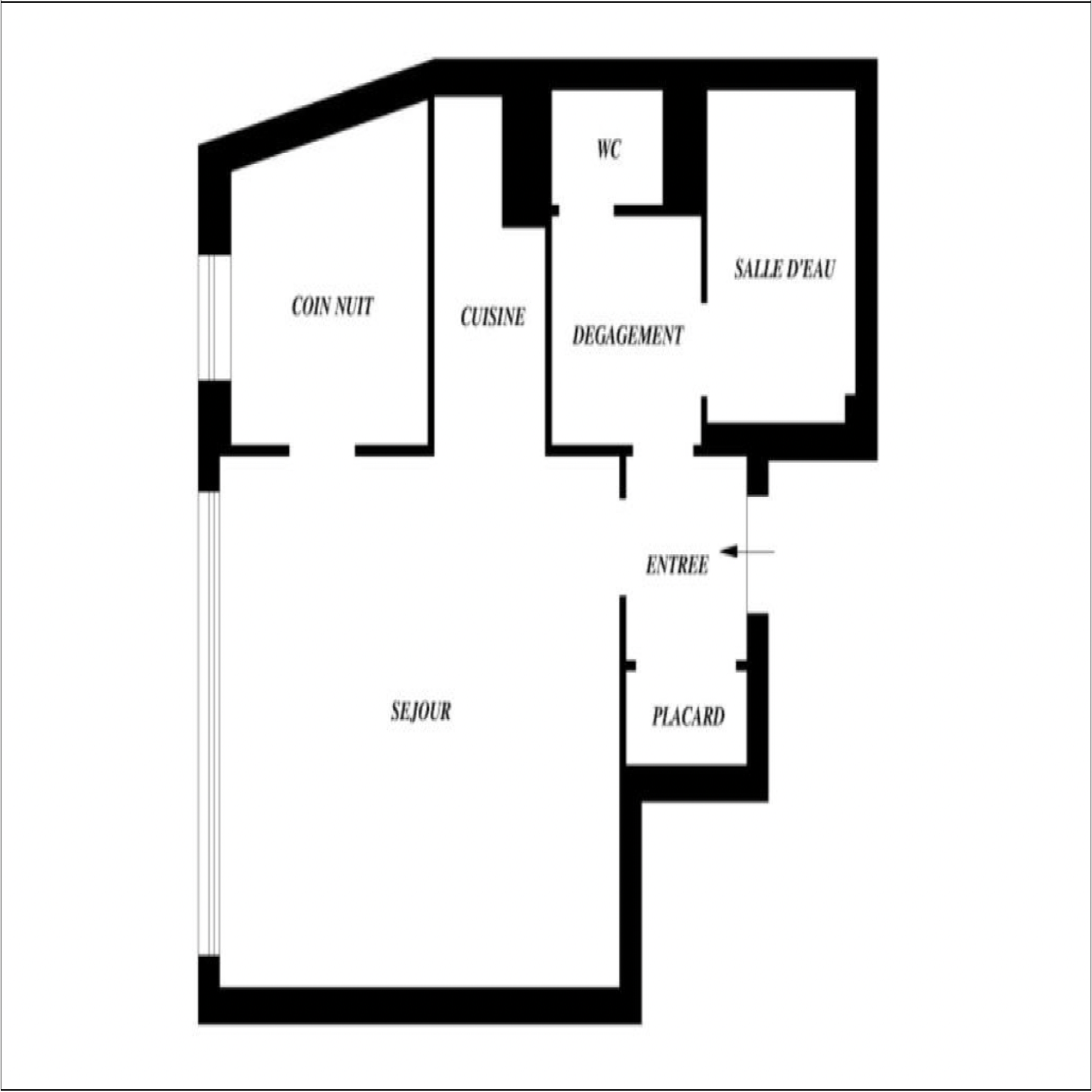 Il se compose d'une entrée avec placart, distribuant d'un côté, un dégagement avec wc indépandant, une salle de bain indépendante et de l'autre côté une cuisine ouverte sur un agréable séjour ainsi qu'un coin nuit.