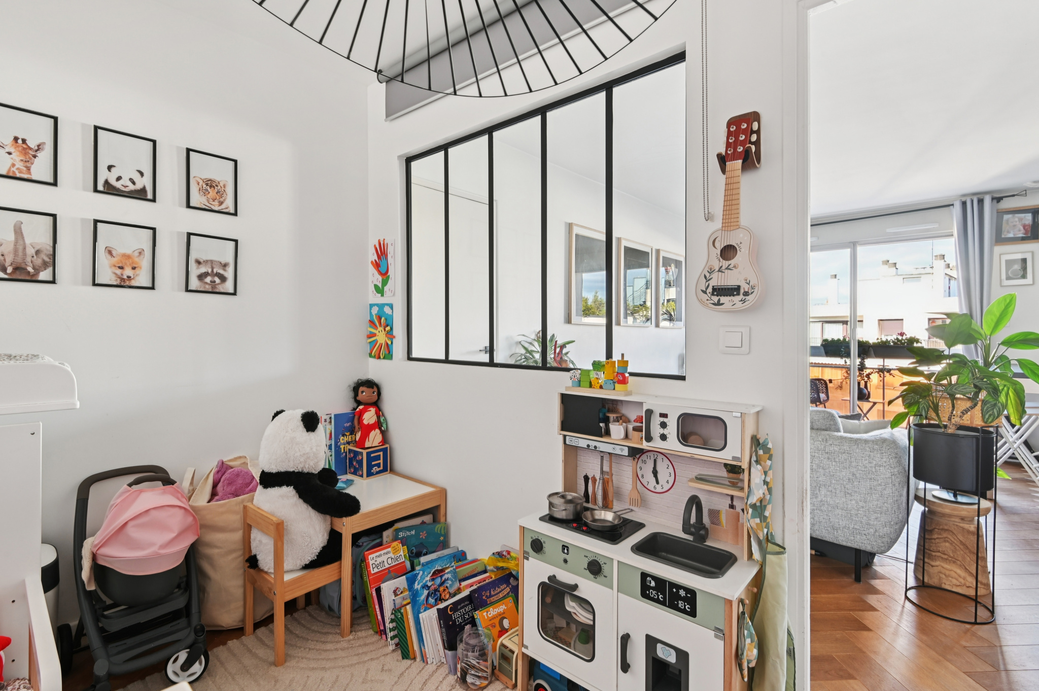 Dès votre arrivée, vous serez séduit par une entrée élégamment conçue doté de placards de rangement sur mesure.Celle-ci distribue un espace bureau pouvant aisément faire office de chambre d'enfant, ainsi qu'un superbe séjour lumineux ouvert sur une cuisine américaine entièrement équipée. L'ensemble se prolonge harmonieusement par un agréable balcon, idéal pour profiter des beaux jours.