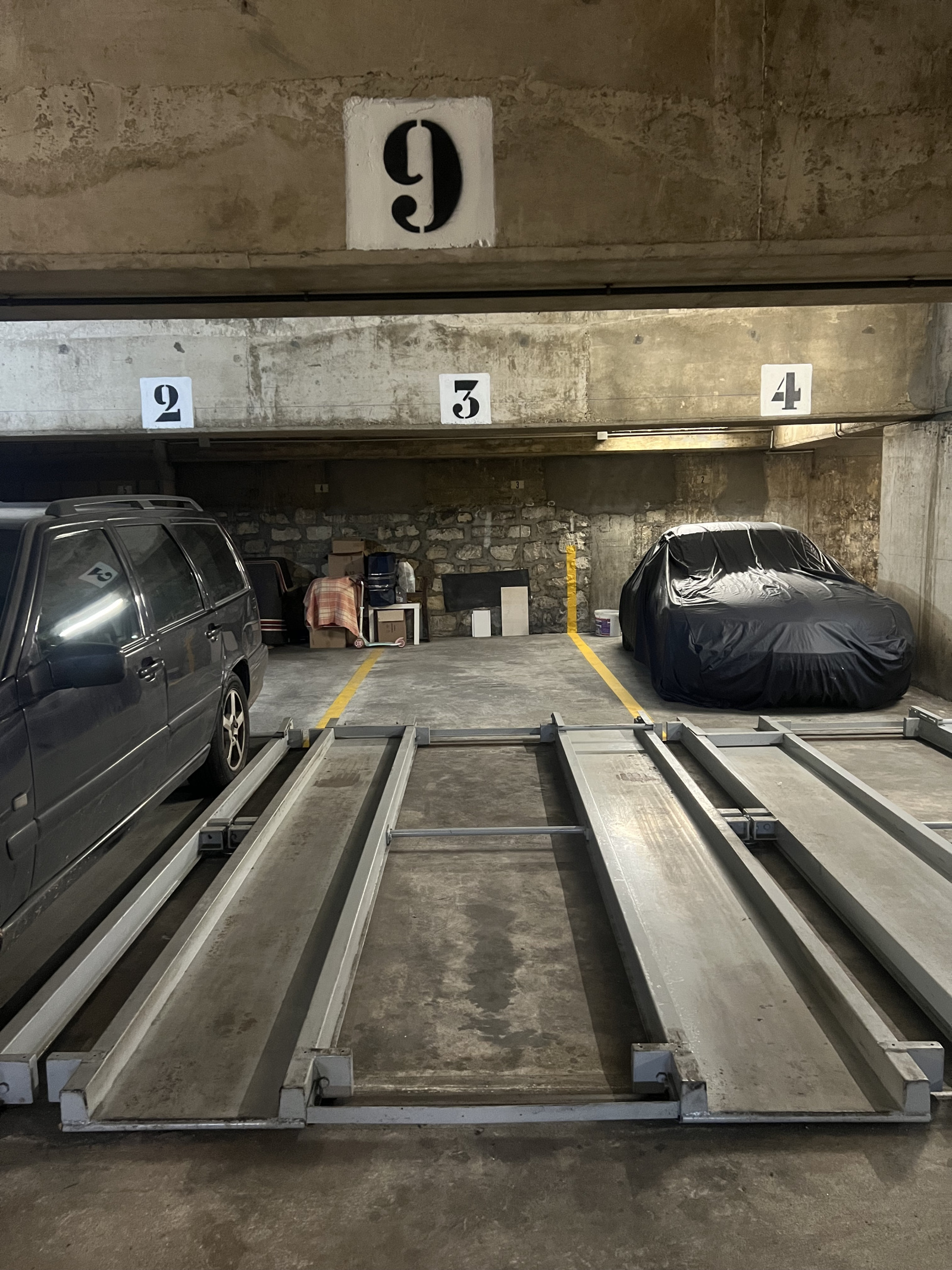 Un emplacement de parking au deuxième sous-sol d'un immeuble.