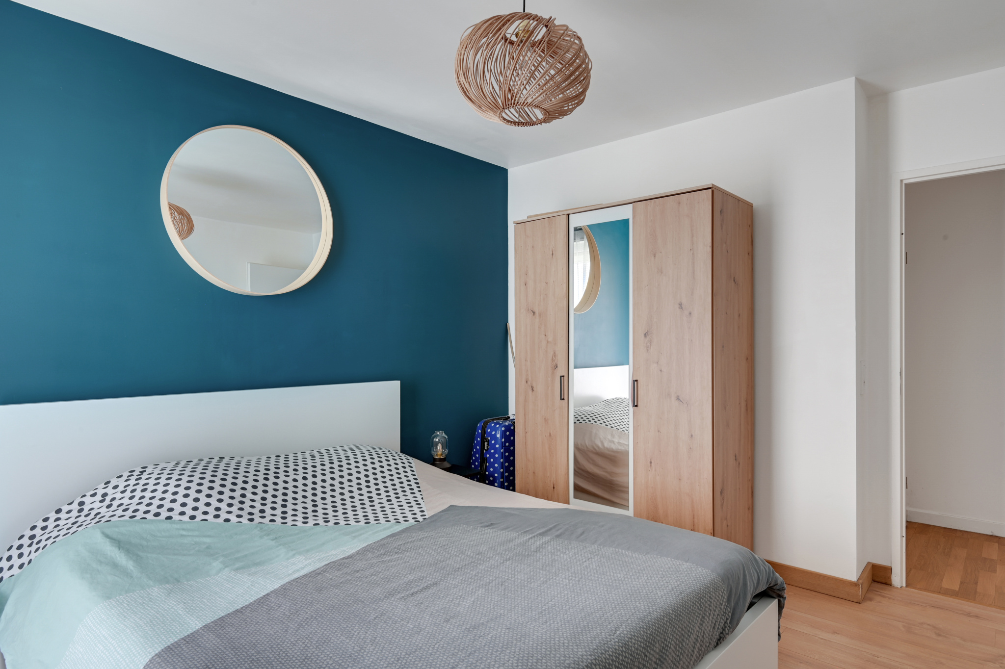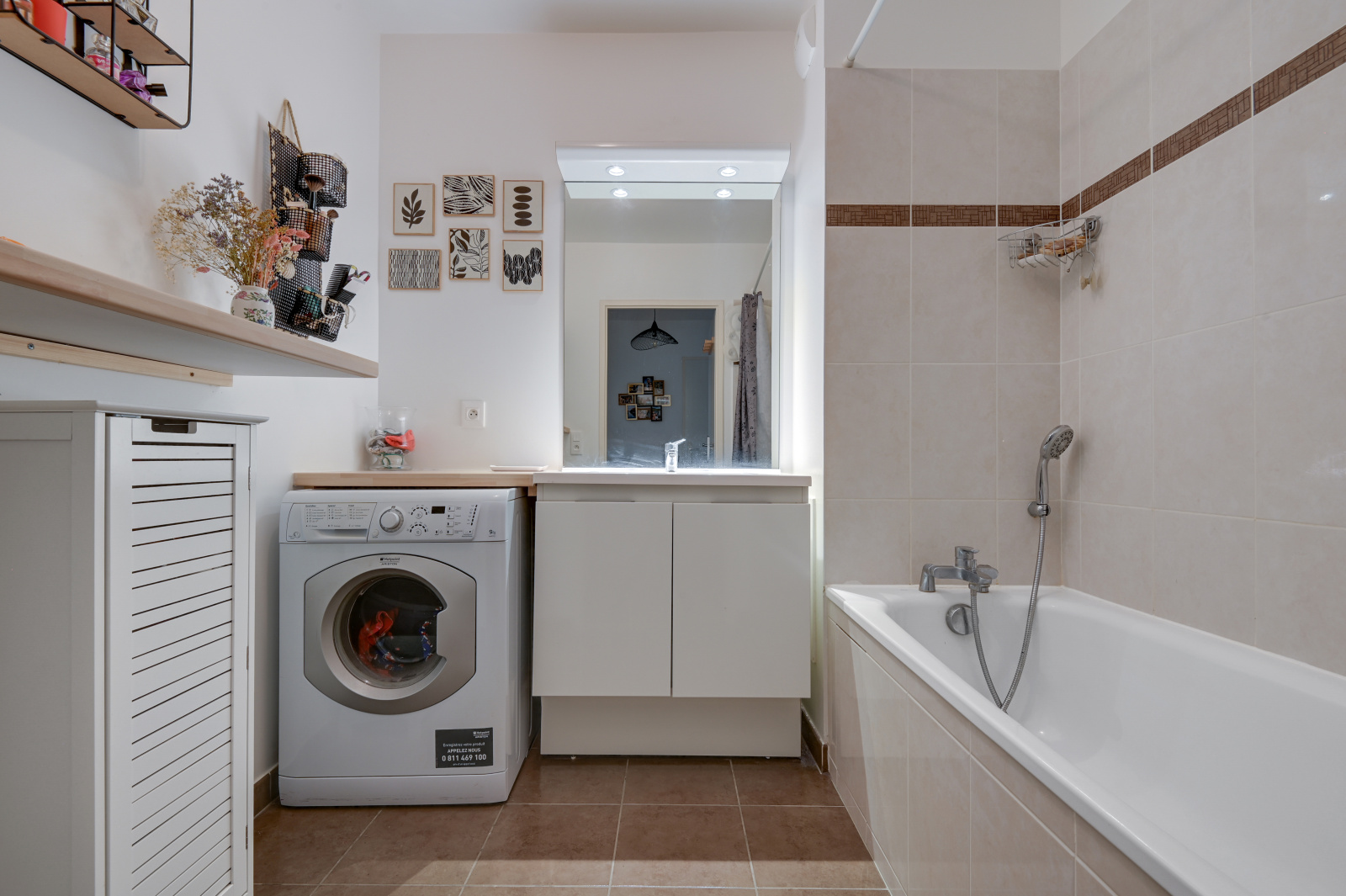 Il se compose d'une entrée avec un grand placard de rangements, un toilette indépendant avec vasque. Distribuant d’un côté ; un grand séjour avec cuisine américaine entièrement meublée/équipée prolongée d’un balcon et de l’autre côté ; une première chambre avec placard intégré ainsi qu'une seconde grande chambre parentale et une salle d’eau avec baignoire.