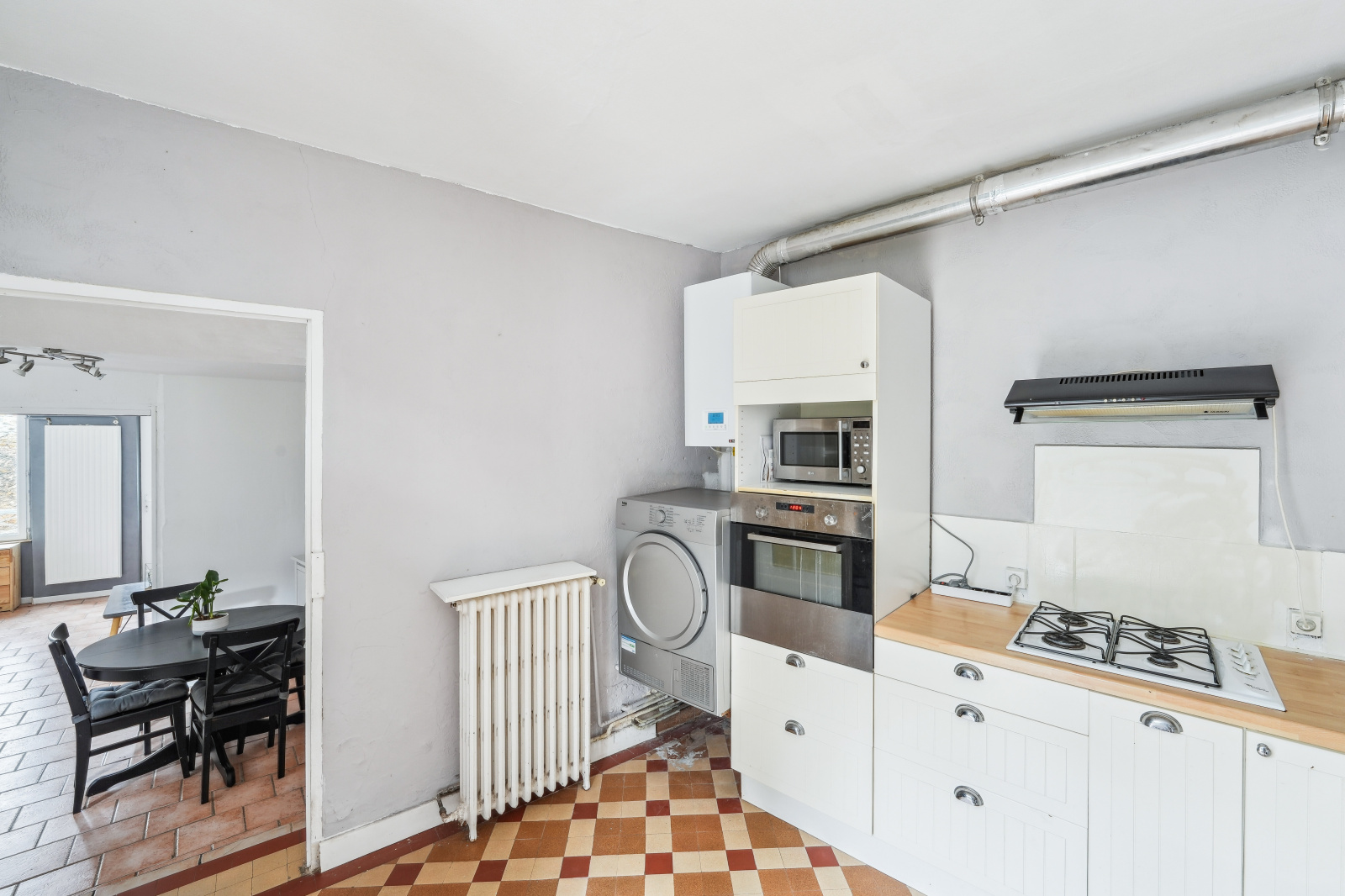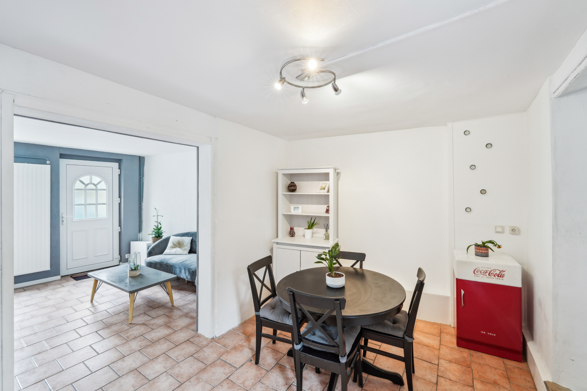 Au rez-de-chaussée, un agréable séjour prolongé d'une salle à manger, une grande cuisine indepandante donnant sur une courette à l'abri des regards et enfin un WC indépendant.