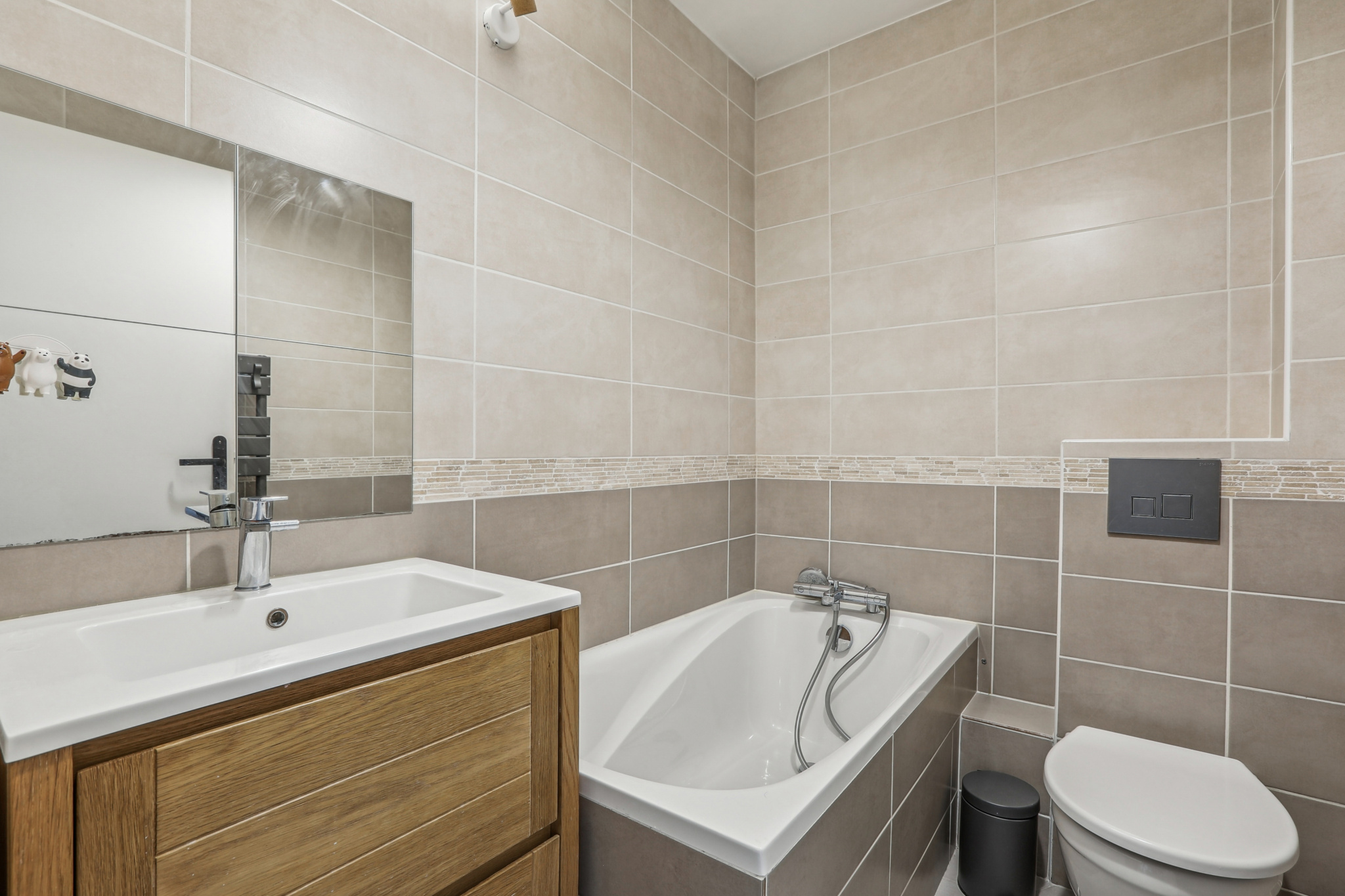 Au 1er étage, vous trouverez un palier distribuant une grande suite parentale (17.52m2) avec dressing et salle d'une salle d'eau attenante, une seconde chambre (12m2) et deux autres chambres (10m2) ainsi qu'une salle de bain avec baignoire vasque et WC.