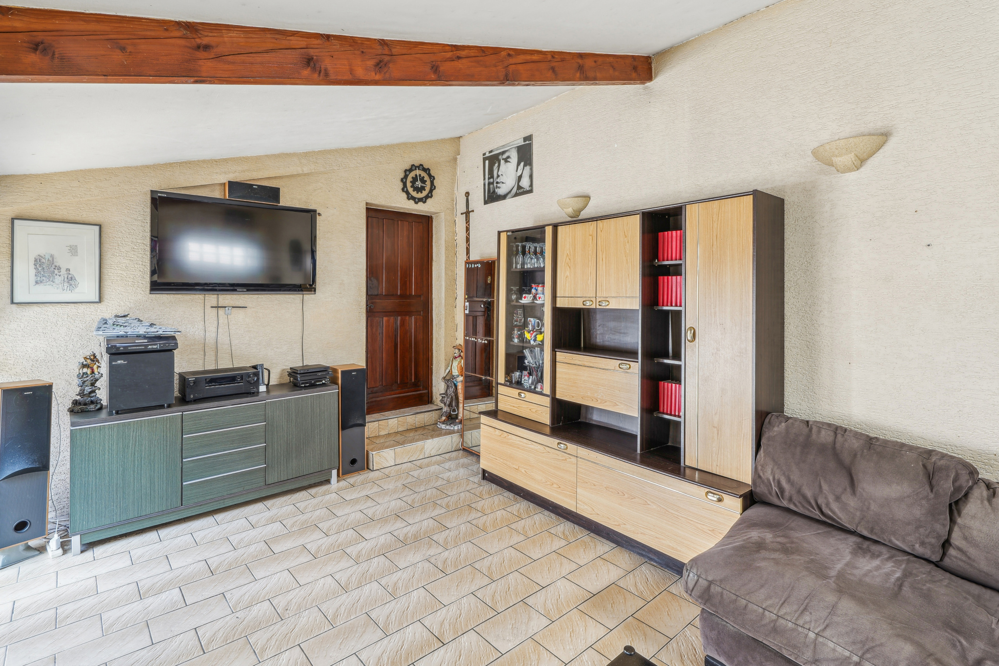 Rideaux éléctriques dans le séjour.