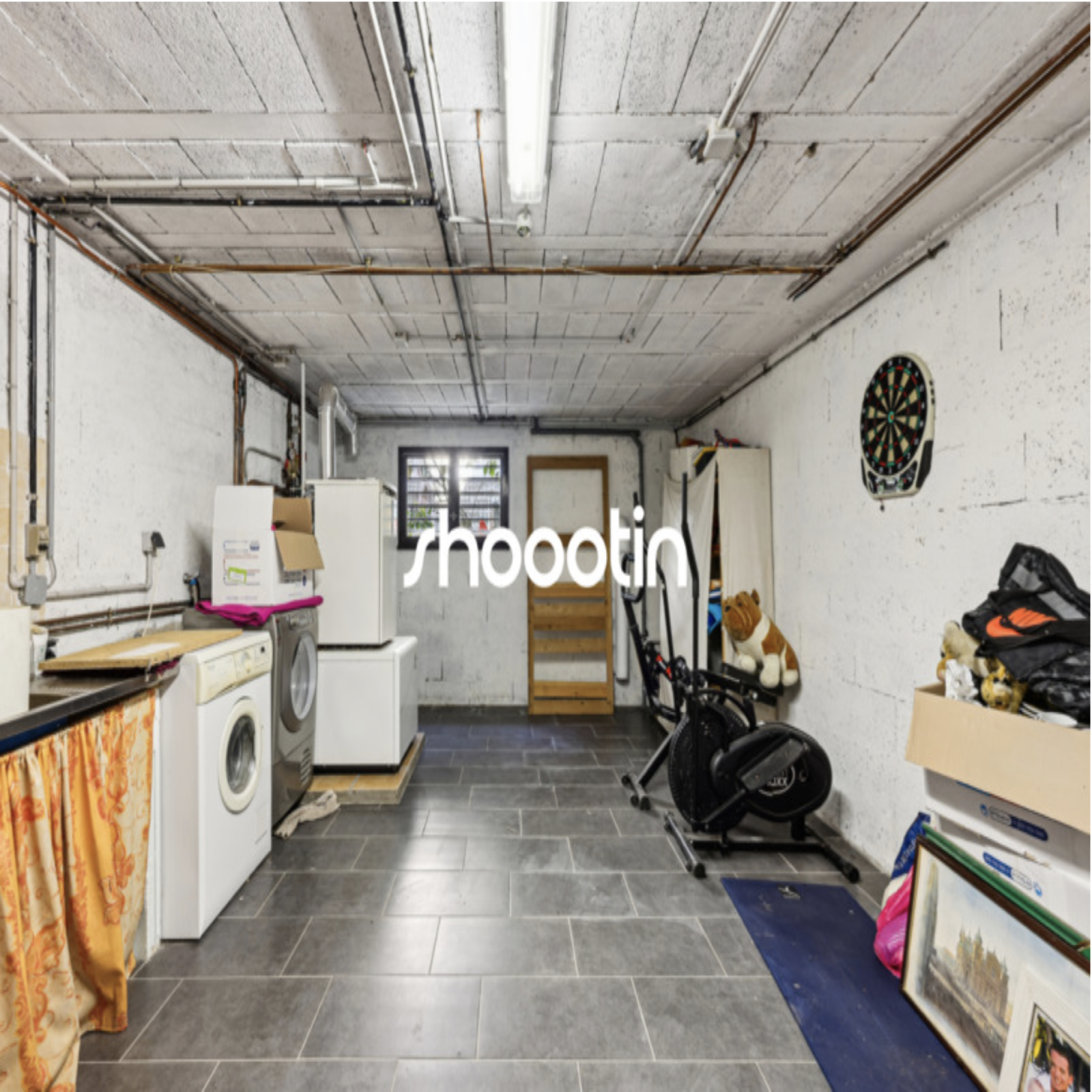 Au sous-sol, vous trouverez un grand espace pouvant étre améngé selon vos désirs, un coin cave, une grande buanderie et un garage.