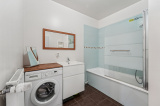 Dans le prolongement de l'entrée, vous découvrirez deux belles chambres (13.10 m2 & 9.85 m2), un WC indépendant avec meuble de rangement et enfin une spacieuse salle de bain moderne (5.55m2) equipée d'une vasque, d'une baignoire et d'une arrivée d'eau pour machine à laver.