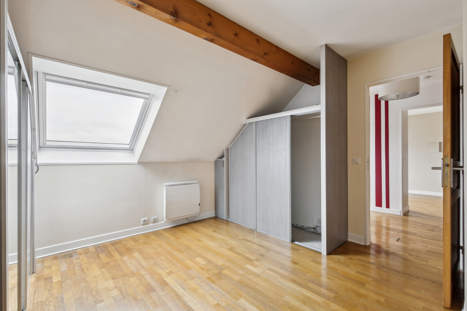 L'appartement est totalement baigné de lumière grâce à ses velux à l'étage et ses grandes portes fenêtres dans le séjour/cuisine.